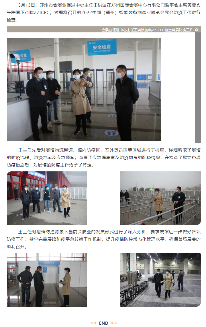 鄭州市會(huì)展業(yè)促進(jìn)中心主任王洪波蒞臨ZZICEC檢查首展防疫工作