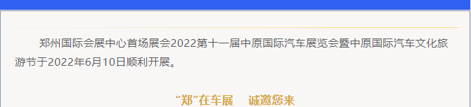 鄭州國際會展中心首場展會2022第十一屆中原國際汽車展覽會暨中原國際汽車文化旅游節(jié)于2022年6月10日順利開展。
