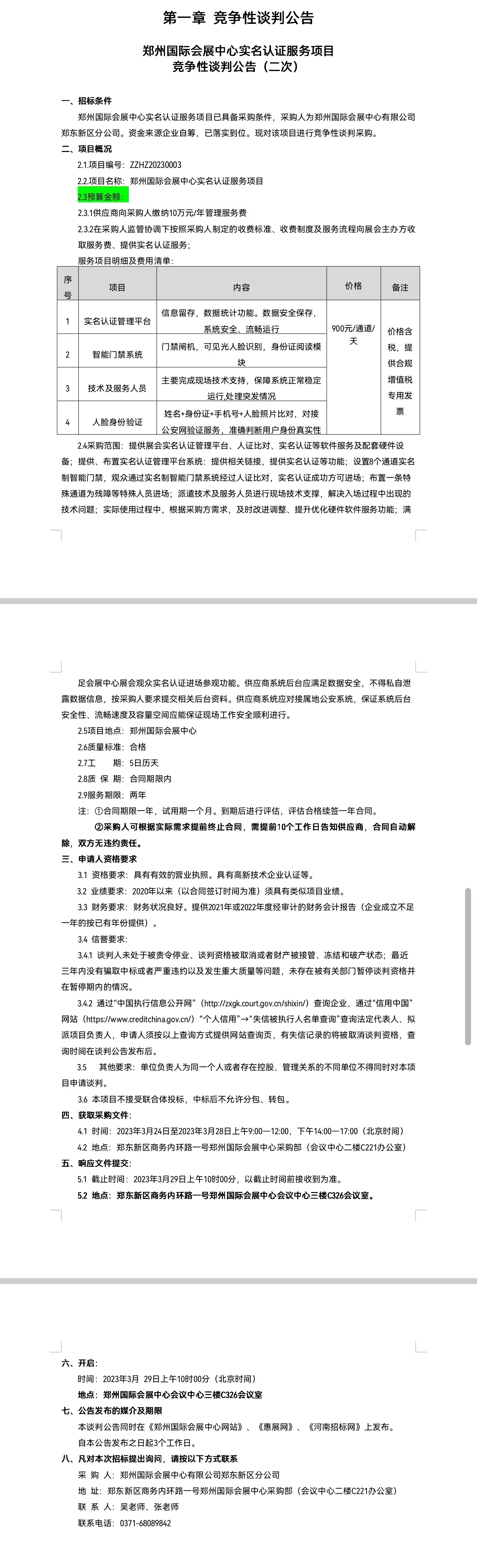 鄭州國際會展中心實(shí)名認(rèn)證服務(wù)項(xiàng)目 競爭性談判公告(二次)